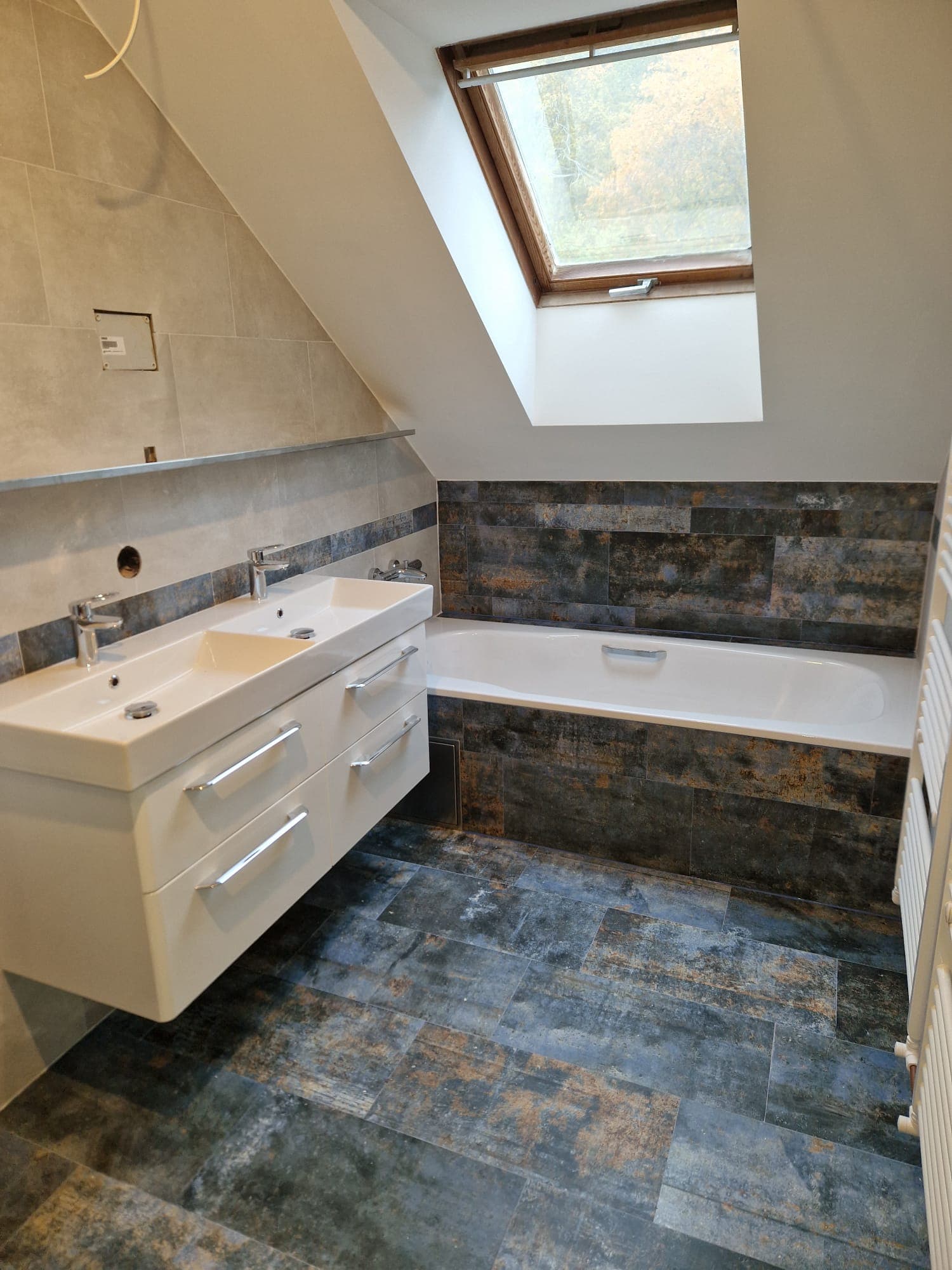 Kompletní realizace koupelny od A do Z — návrh, demontáž, hydroizolace, obklady, dlažba, sanitka, instalatérství. Předáme vám hotovou koupelnu bez starostí.